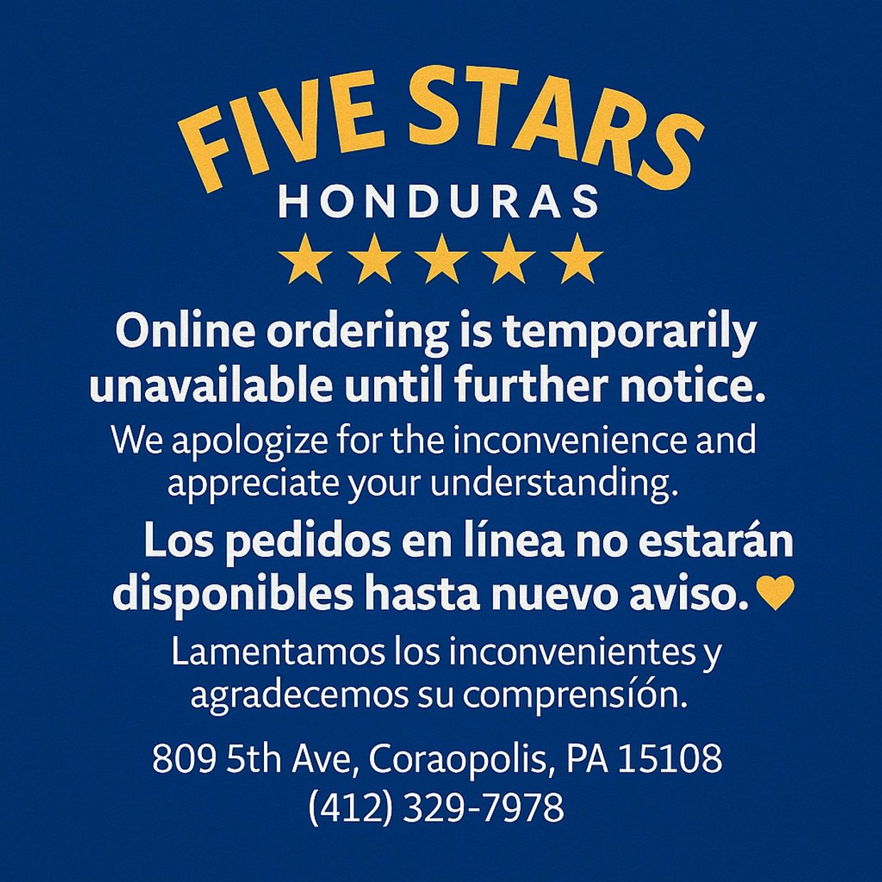 We offer a wide variety of dishes inspired by amazing flavors of Honduran food are available at Five Stars Honduras Restaurant in Coraopolis, PA. We’re the only authentic Honduran restaurant in the community and are eager to show you the phenomenal meals and friendly atmosphere you can enjoy when you dine with us. central american restaurant