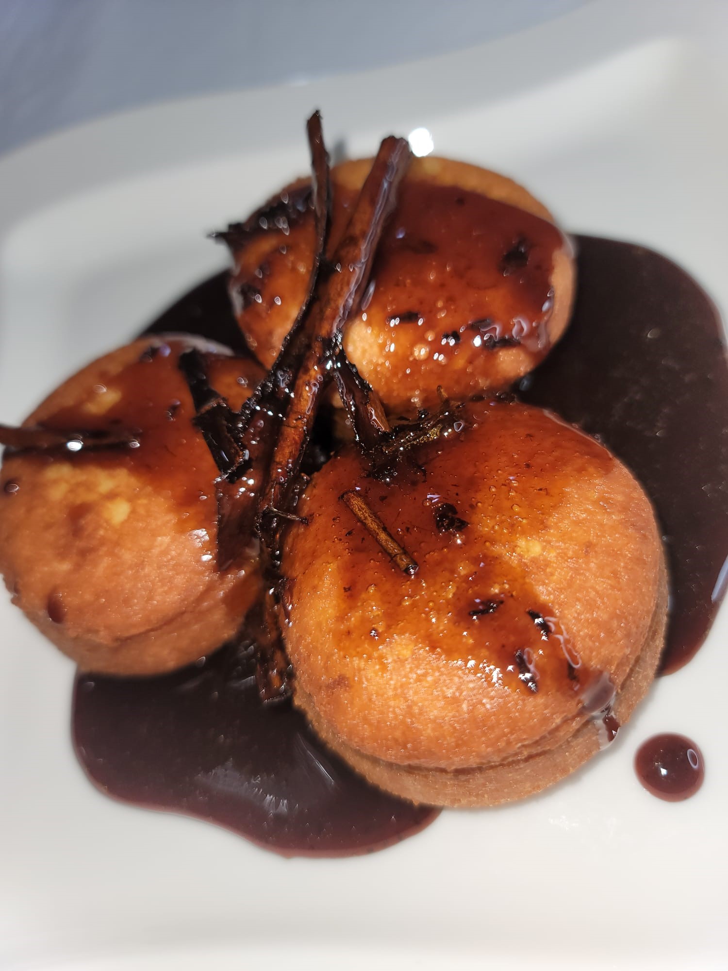 Sweet fried dough balls drizzled with warm caramel syrup - a Honduran dessert favorite